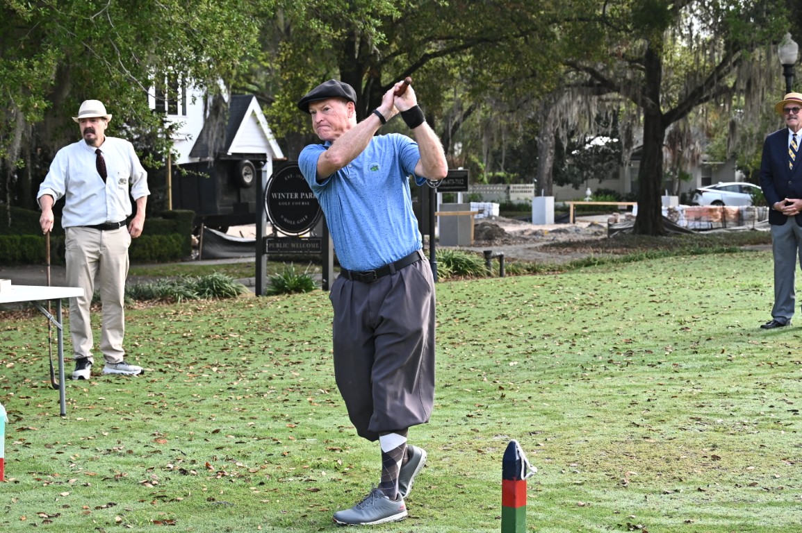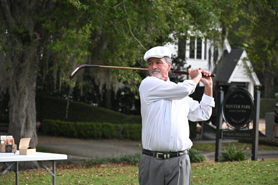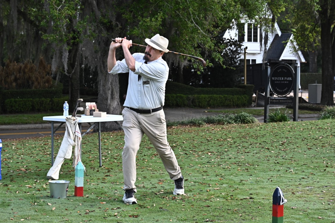 The use of 130-year-old golf clubs alongside a Gutty Percha golf ball, and golfers dressed in historic clothing captivated and astonished the residents living in the vicinity of the Winter Park 9 Golf Course. Witnessing these classic implements in action not only highlighted the historical roots of the game of golf but also brought a sense of nostalgia and admiration for the sport’s enduring traditions on this golf course designed in 1914.